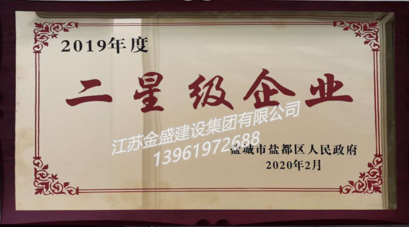 2019年度鹽城市鹽都區(qū)人民政府二星級企業(yè)