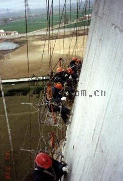 ◎ 無腳手架不停產(chǎn)經(jīng)營項目: 一、承接各種煙囪、水塔(磚、砼、鋼結(jié)構(gòu))的新建、安裝、加固、拆除、增高、混凝土外殼滑模加固,傾斜矯正,更換內(nèi)襯,清洗除塵,刷航標 色環(huán),爬梯、平臺、護網(wǎng)、避雷針等露天金屬更換加固及油漆防腐保養(yǎng)等。 二、煙囪、冷水塔、水塔、尿素造粒塔、排毒塔、筒倉內(nèi)外壁清理、修補、防腐、防水、防潮堵漏。 三、電視臺塔、發(fā)射塔、微波塔,變電構(gòu)架、橋梁,各種龍門吊車,鋼梁屋架,煤氣罐、(油、酸、堿、溶劑)儲罐及化工設(shè)備等金屬表面處理, 特種防腐。 四、高樓、大廈、廠房、輸煤棧橋的外墻清理、清洗、修補,裝璜、涂裝及耐高溫防火涂料。 五、煙囪內(nèi)壁安裝脫硫除塵凈煙設(shè)備裝置。 六、煙氣環(huán)保工程、在線平臺、之字形鋼樓的設(shè)計、制作、安裝、防腐、標定對心鉆孔等一套完整的專業(yè)施工技術(shù),經(jīng)設(shè)計、環(huán)保部門指定專業(yè)配套服務單位。 各種地下人防洞庫、電纜溝、泵房、水池、水壩、隧道、涵洞、礦井、肓井、地道巖基的防滲、防漏、堵漏補漏和屋面防水堵漏等。 七、天女油漆代理銷售。